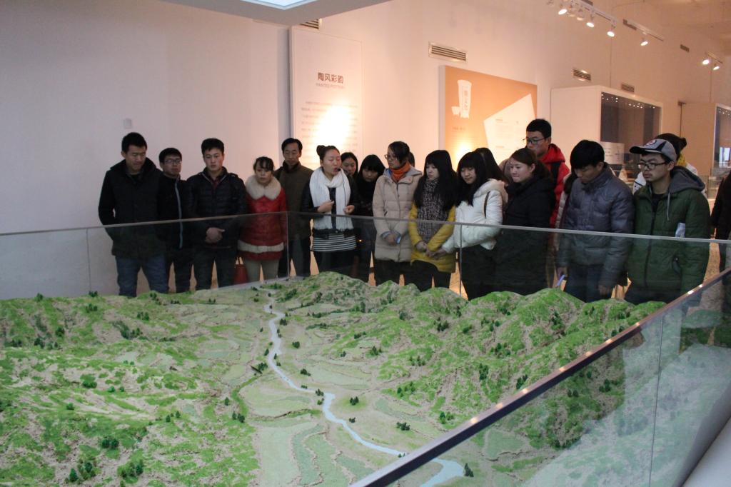 在沙盘前,同学们直观地了解了大地湾遗址的建设全貌,对大地湾文化形成的植被和气候环境有了更深刻的了解和认识。