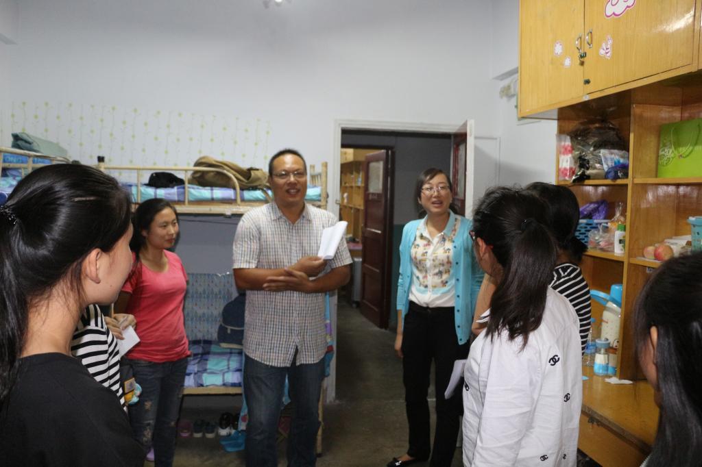 9月7号晚,澳门网投党总支书记王小芳、院长刘新文、副院长杨富巍、吕玲玲,辅导员及2016级各班班主任到16级新生宿舍走访、看望新生。