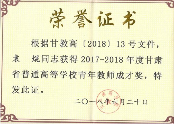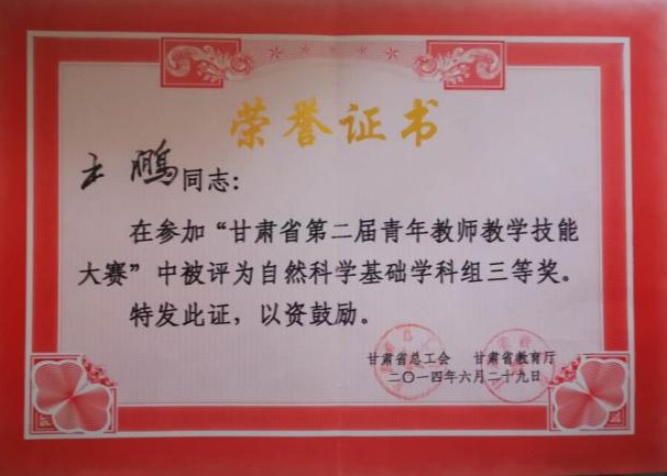 近年来,学院在新进青年教师中实施“青年教师培养导师制”,使青年教师尽快熟悉教学过程,成长为教学能手。鼓励年轻教师攻读博士学位,十三五期间,共引进博士13人,4位教师获评正高级职称,2位教师获评副高职称,3位教师攻读博士学位。1人入选教育部“新世纪人才”,2人被聘为甘肃省“青年飞天学者”,1人入选甘肃省领军人才,1人荣获甘肃省园丁奖,5人荣获甘肃省高等学校青年教师成才奖,9人入选澳门网投“青蓝人才工程”。1位教师获天水师院“四有”好老师,11位教师荣获天水师院“三育人”先进个人,2位教师获天水师范学院第三届教学优秀奖。在校级“微课竞赛”中,1位教师荣获一等奖,1位老师荣获二等奖。