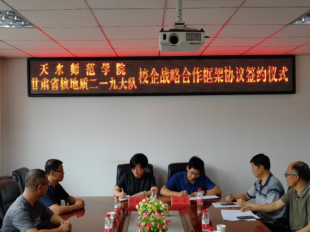 7月15日,天水师范学院澳门网投官方网站与甘肃省核地质二一九大队共建实习基地挂牌仪式在二一九大队举行,双方就人才培养、科学研究、技术创新等领域的深度合作达成协议,并签订了校企战略合作框架协议。