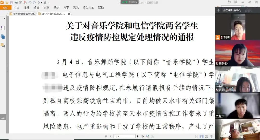 疫情防控,人人有责。为做实做强澳门网投学生防疫工作,切实保障学生生命安全和身体健康,做好疫情防控思想引领工作,各班积极响应党总支部署安排,及时召开“科学防控,抗击疫情”线上主题班会,全体同学认真学习学校、学院防疫制度和管理办法,由班干部领学《关于对音乐学院和电信学院两名学生违反疫情防控规定处理情况的通报》等文件,全体同学深刻领会文件精神,从典型违纪事件中吸取经验教训,严格遵守学校防疫规定,时刻提高警惕性,力争做到“自我教育、自我管理、自我服务、自我监督”,增强“一切听指挥”的大局意识,在疫情防控大考中彰显青年力量,努力争做真正能堪当大任的新时代合格大学生。同时,组织学生集体观看《中国机长》、《建党伟业》等红色影片,通过学习红色知识,传承红色基因,坚定理想信念,不断从红色基因中汲取前进的力量,勇担抗疫重任,在成为担当民族复兴大任时代新人的道路上努力奋进。
