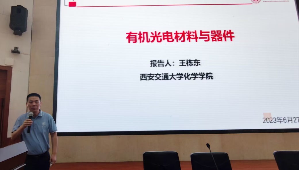 王栋东以“有机光电材料与器件”为题,介绍了有机光电子学这一新兴多学科相互交叉研究领域,生动形象地讲述有机电致发光(OLED)的机理,重点分享了其课题组在呋喃[2,3-b]喹喔啉骨架发光材料、器件及其应用方面的研究进展。