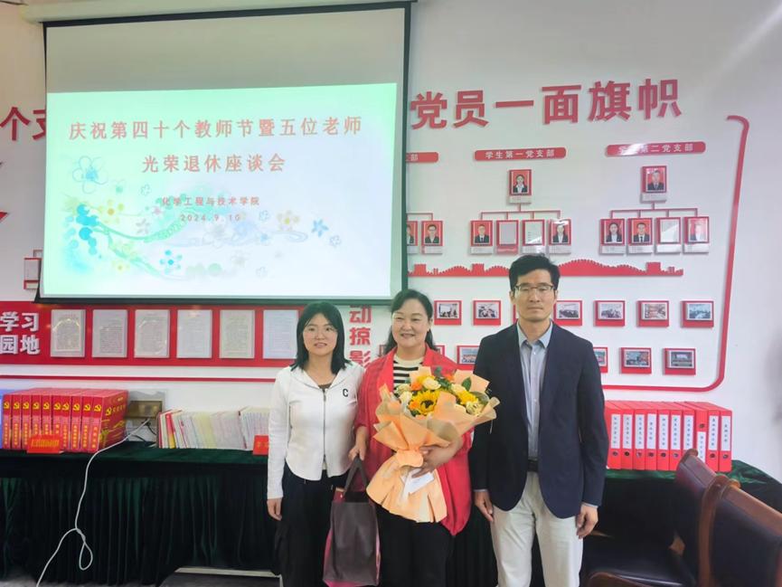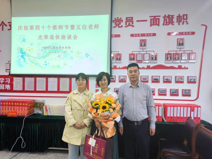 9月10日下午,澳门网投官方网站在三号实验楼211会议室举行“庆祝第40个教师节暨五位老师光荣退休座谈会”。学院领导、退休老教师、教职工代表共二十余人参加座谈会,会议由学院党委书记王小芳主持。