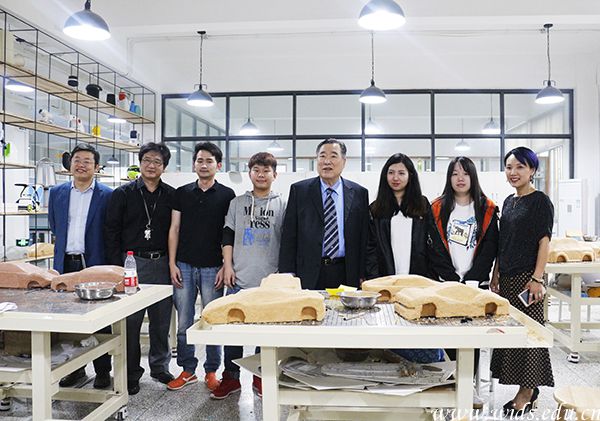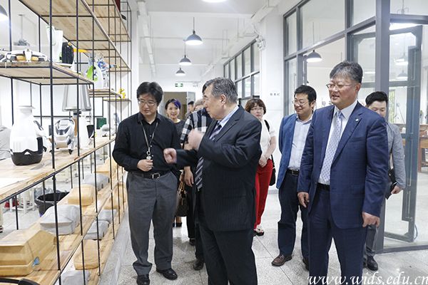 咸基善校长一行参观艺术设计学院实验教学中心。金方平 摄