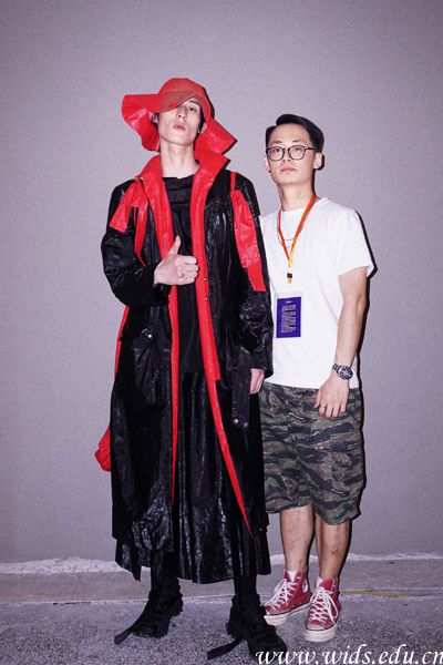张鑫淼与身着《武丶极》的模特合影。