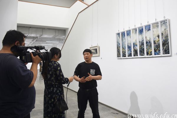 艺术家、武汉大学博士生导师管家庆现场讲解画作。舒信傲 摄