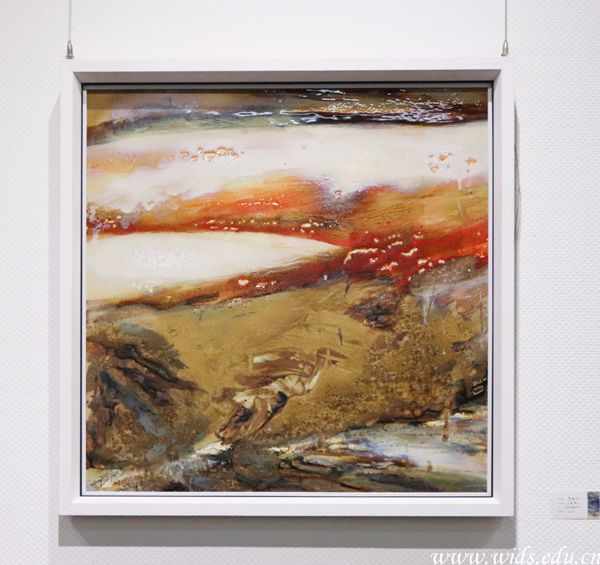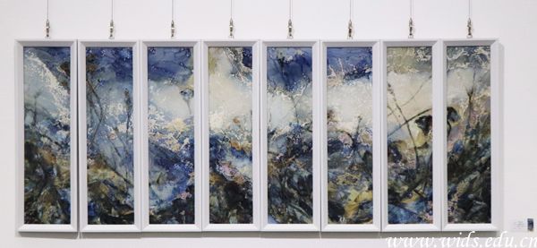 “水”、“火”、“土”以三种不同的独特艺术表现形式,给大家带来了丰富的视觉盛宴。“水”,水彩,方圆教授以水和彩的交融与挥洒,渲染与点缀,表达了她冰下激流内在情感的萌动,和不墨守成规的大胆探索。“火”,高温釉下彩的窑变,管家庆教授将釉与火结合,通过一千二百度的高温,追求破茧为蝶的幻化色彩魅力。“土”以矿物质颜色的混响效果,追求画面的丰富多彩或深沉内敛。沈松德教授习惯用矿物质颜色反复重置与并置,以严谨细腻的表现语言,一点一点,一笔一笔,达到了一个充满虚无禅静的出世境界。