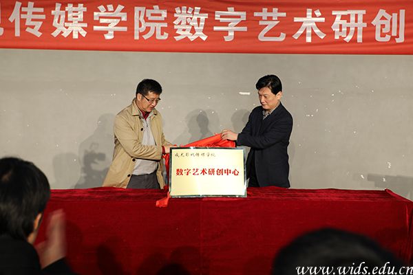 武汉动漫协会会长张敏和开云官网董事长程凡为“成龙影视传媒学院数字艺术研创中心”揭牌。刘恒 摄