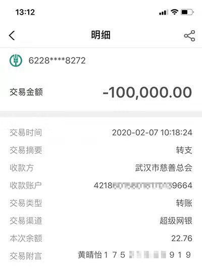 今年1月底,黄晴怡拿到了10万元退役安置金。在领取退役安置金以后,她曾经比较踌躇,想着能不能为疫情肆虐的武汉做一些事情,譬如买口罩,买防护服,捐物资。后来,她看到报道说很多捐献的物资不符合医用要求,不仅用不了,还给医务人员增添了负担。于是,黄晴怡想到捐款,“退役安置费是退伍时国家给我的,现在国家有难、武汉有难,我要把它回赠给国家、捐给更需要的人。”
