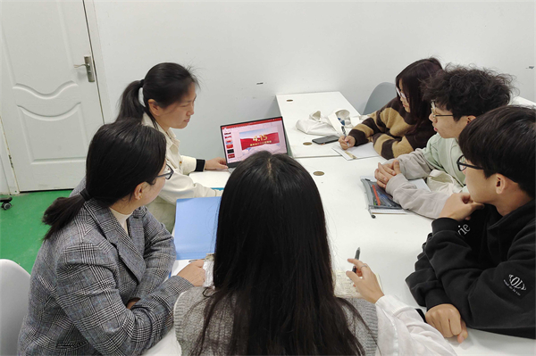 范露与所带班级班委讨论筹备班级活动。