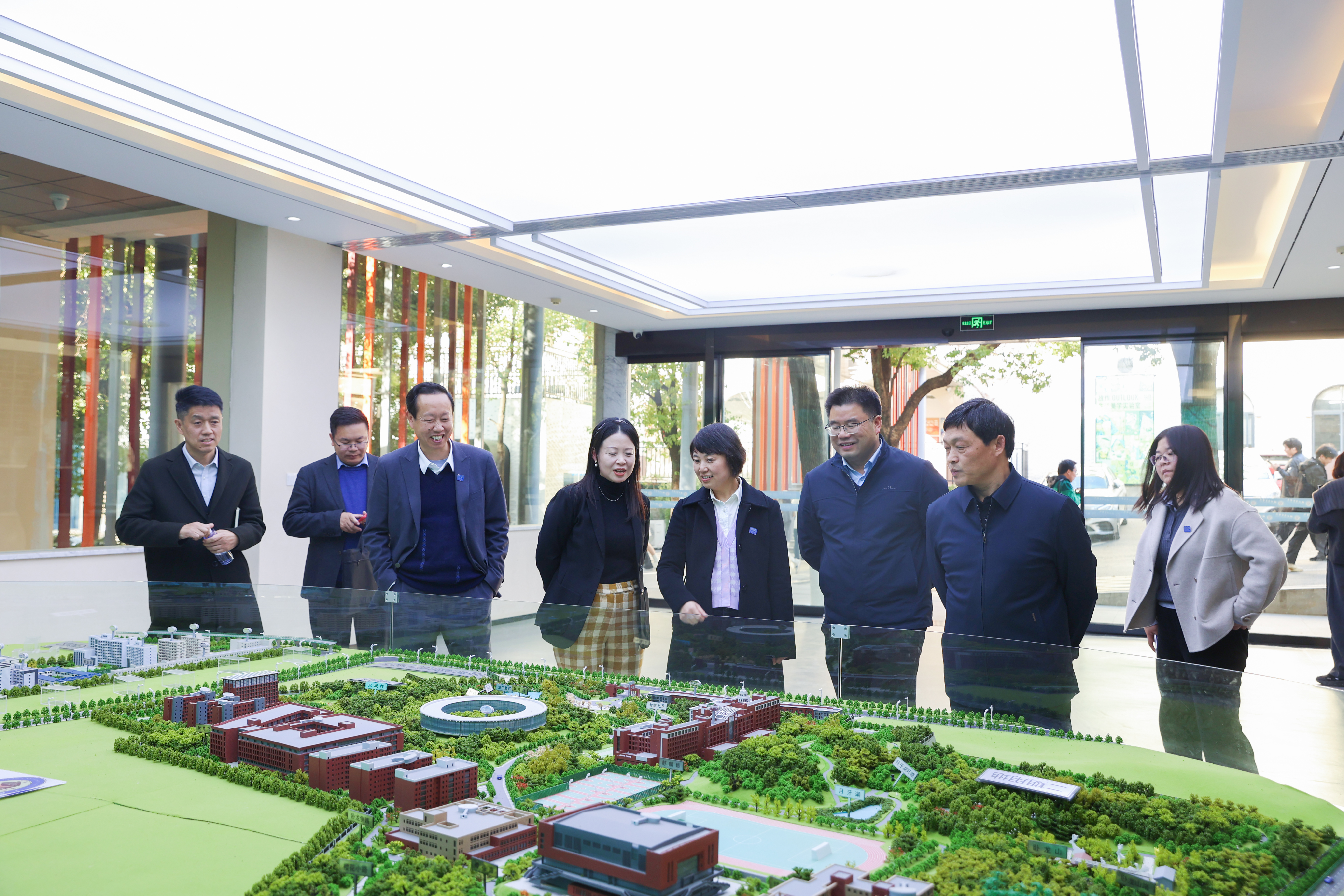 会后,在杨世雄等领导陪同下,王长华一行参观了校史馆、图书馆和部分产业学院。