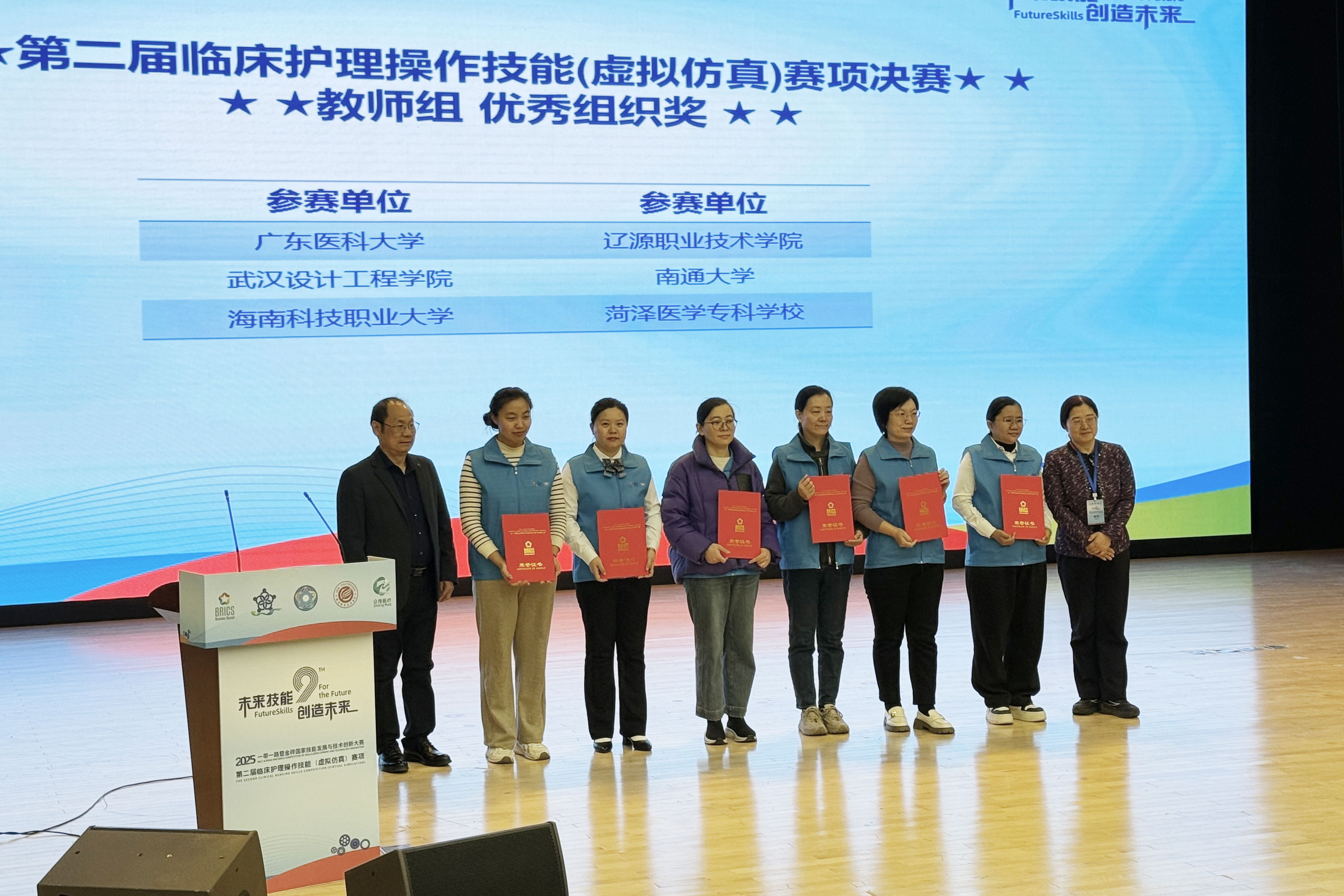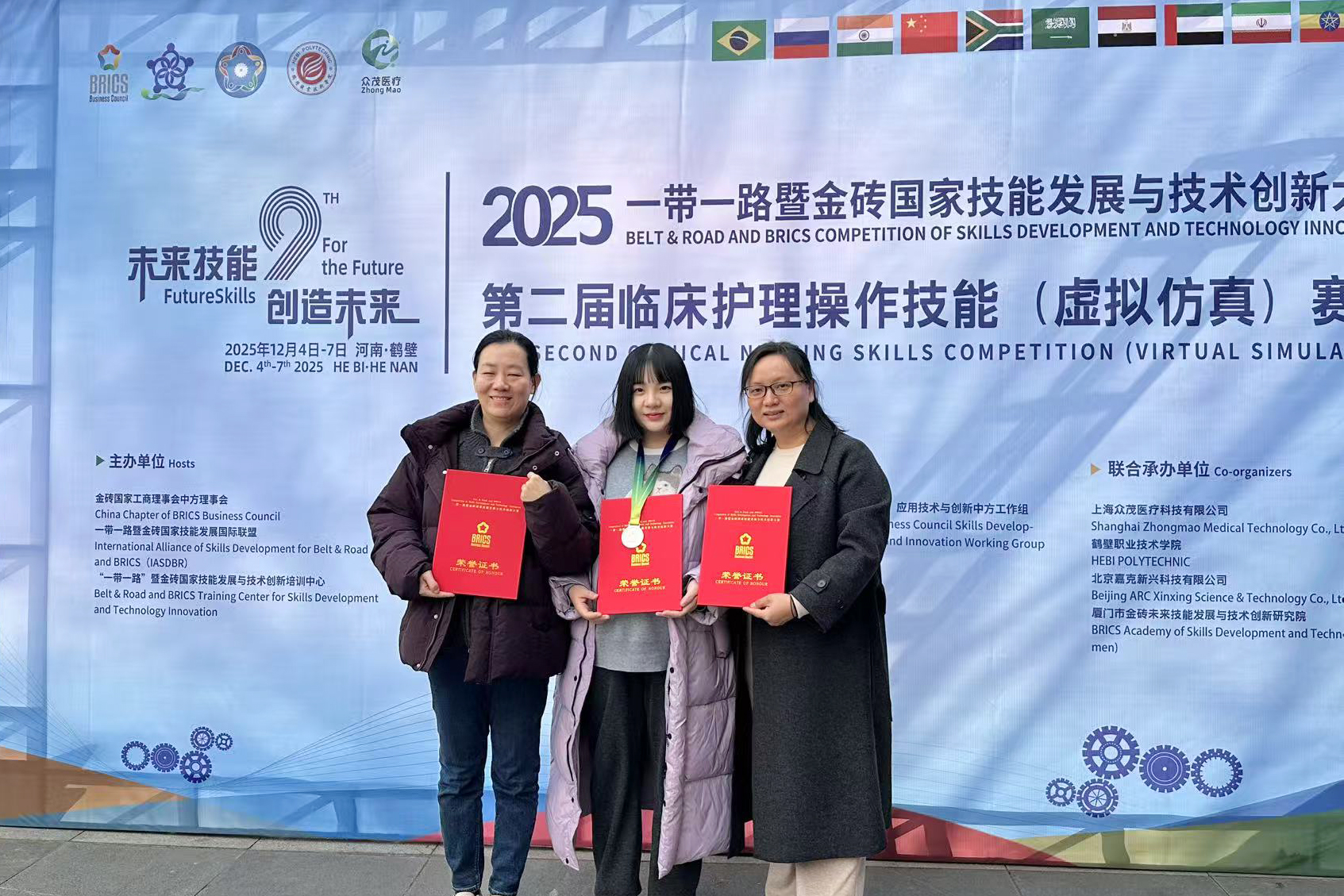 本网讯(通讯员 何怡庆 孙烁雅)12月5日至7日,2025“一带一路”暨金砖国家护理技能发展与技术创新大赛第二届临床护理操作技能(虚拟仿真)赛项决赛在河南举行,开云官网参赛师生表现突出,教师组摘得二等奖,学生组揽获二等奖、三等奖各一项及优秀奖三项,学校荣获教师组“优秀组织奖”。