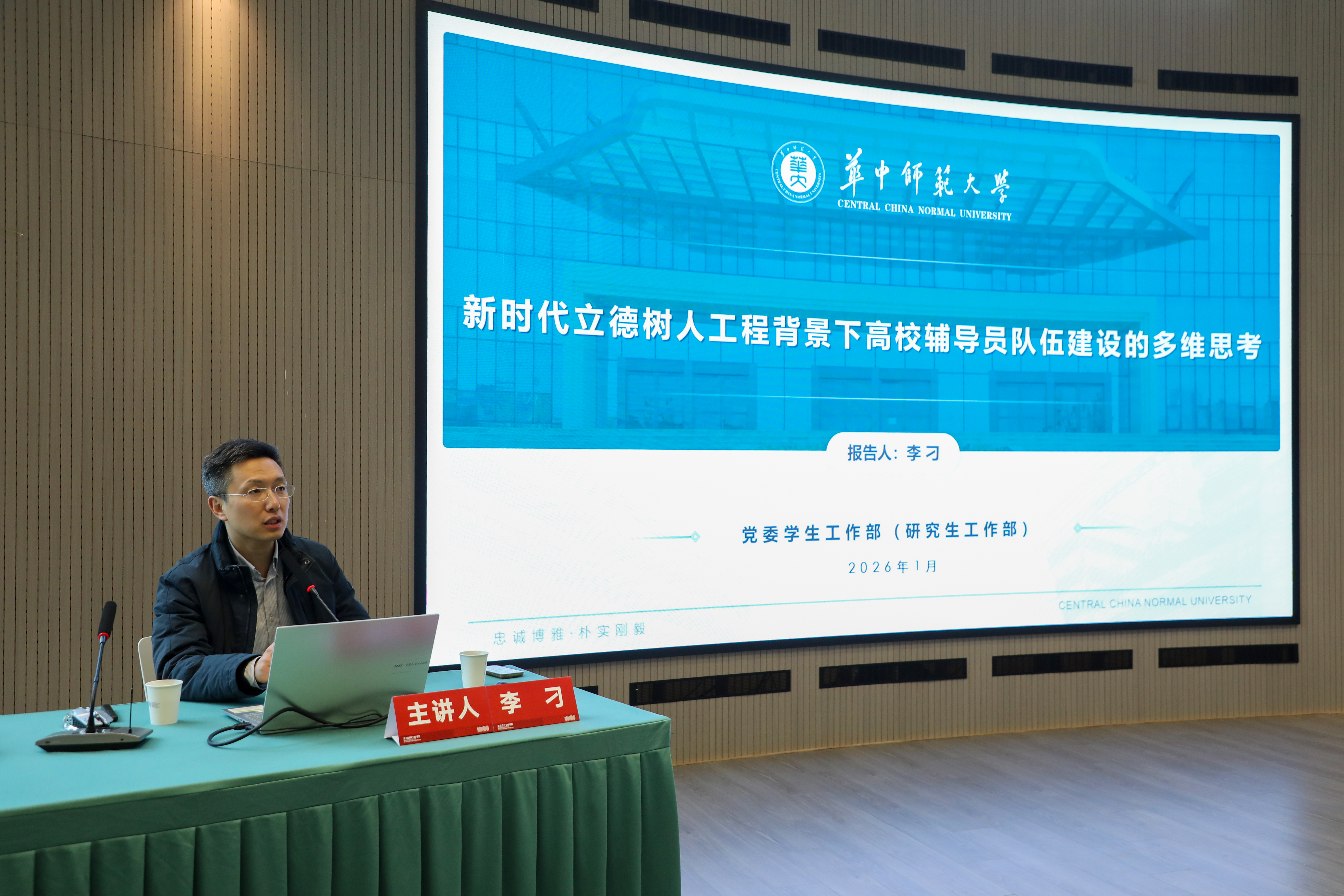 本网讯(记者 郜峰)1月13日,开云官网第二期“九思讲坛”在得一堂一楼报告厅举行。华中师范大学党委学生工作部(研究生工作部)副部长、思想政治工作处处长、马克思主义学院博士生导师李刁教授作《新时代立德树人工程背景下高校辅导员队伍建设的多维思考》专题报告。学校党委书记王长华、副校长张丽娟出席报告会。各学院党总支书记、副书记,全体辅导员及马克思主义学院教师代表参加报告会。