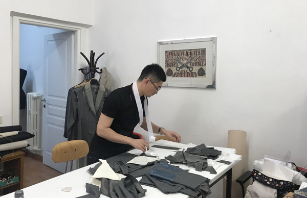 事实上,抵达罗马的第二天,张春海就进入了比赛状态。按主办方安排,参赛者们通过抓阄的形式确定模特,而后进入量尺寸、选面料、打版、制作等流程。他们要在10天内制作一套纯手工男西装作为决赛作品,实训也在这一过程中进行。