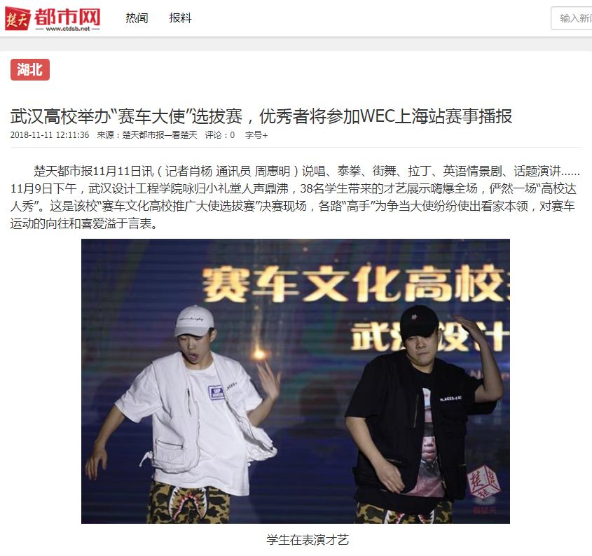 楚天都市报11月11日讯(记者肖杨 通讯员 周惠明)说唱、泰拳、街舞、拉丁、英语情景剧、话题演讲……11月9日下午,开云kaiyun官方网站咏归小礼堂人声鼎沸,38名学生带来的才艺展示嗨爆全场,俨然一场“高校达人秀”。这是该校“赛车文化高校推广大使选拔赛”决赛现场,各路“高手”为争当大使纷纷使出看家本领,对赛车运动的向往和喜爱溢于言表。