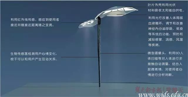 “大学生一般不会主动找老师解决情绪问题,情绪随着心智的成长会有波动,这样就会需要一个理解和释缓的空间。”刘佳颖介绍,“我们在校园景观设施的基础上对原有设计进行智能化升级,增设具有情绪感应的功能,设计出静态椅和动态小叶灯,让常规的校园设施带有趣味性和互动性。”
