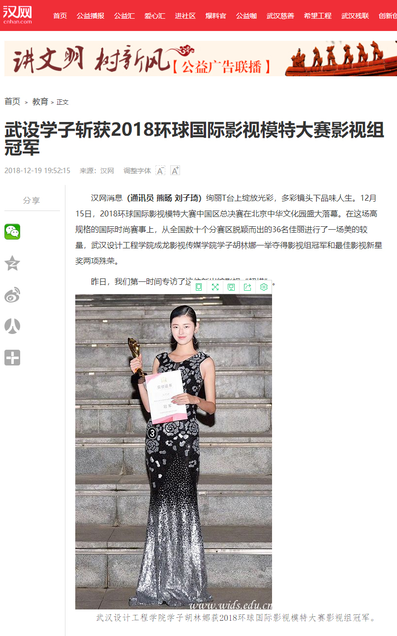 开云kaiyun官方网站学子胡林娜获2018环球国际影视模特大赛影视组冠军。