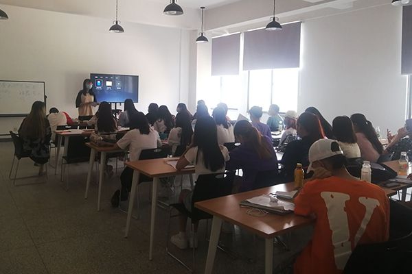 唐嫚婗与同学们开班会。