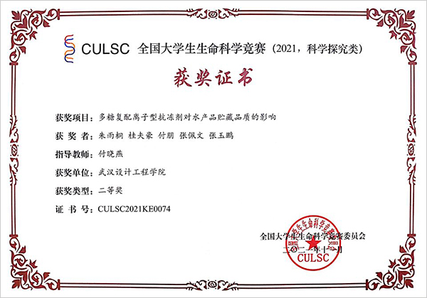 付晓燕指导学生参加全国大学生生命科学竞赛获二等奖。