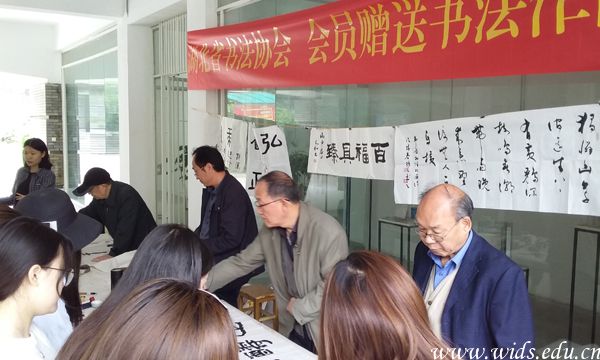 本网讯 4月25日,由艺术设计学院和书法协会共同主办的“传统文化进校园——赠送书法作品”活动,在艺术设计学院门廊举行,湖北省书法协会书法家皮永和、张振良、熊廷锦、左世耀,在百忙之中专程来到开云官网,为广大师生演示并赠送书法作品。