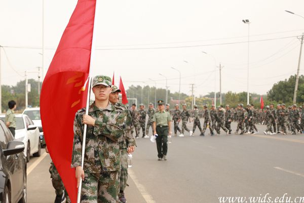 拉练队伍在“一二一”的口令声中健步离开校园。刘恒 摄