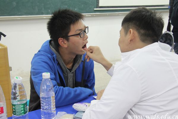 医生为大家检查口腔。张意含 摄